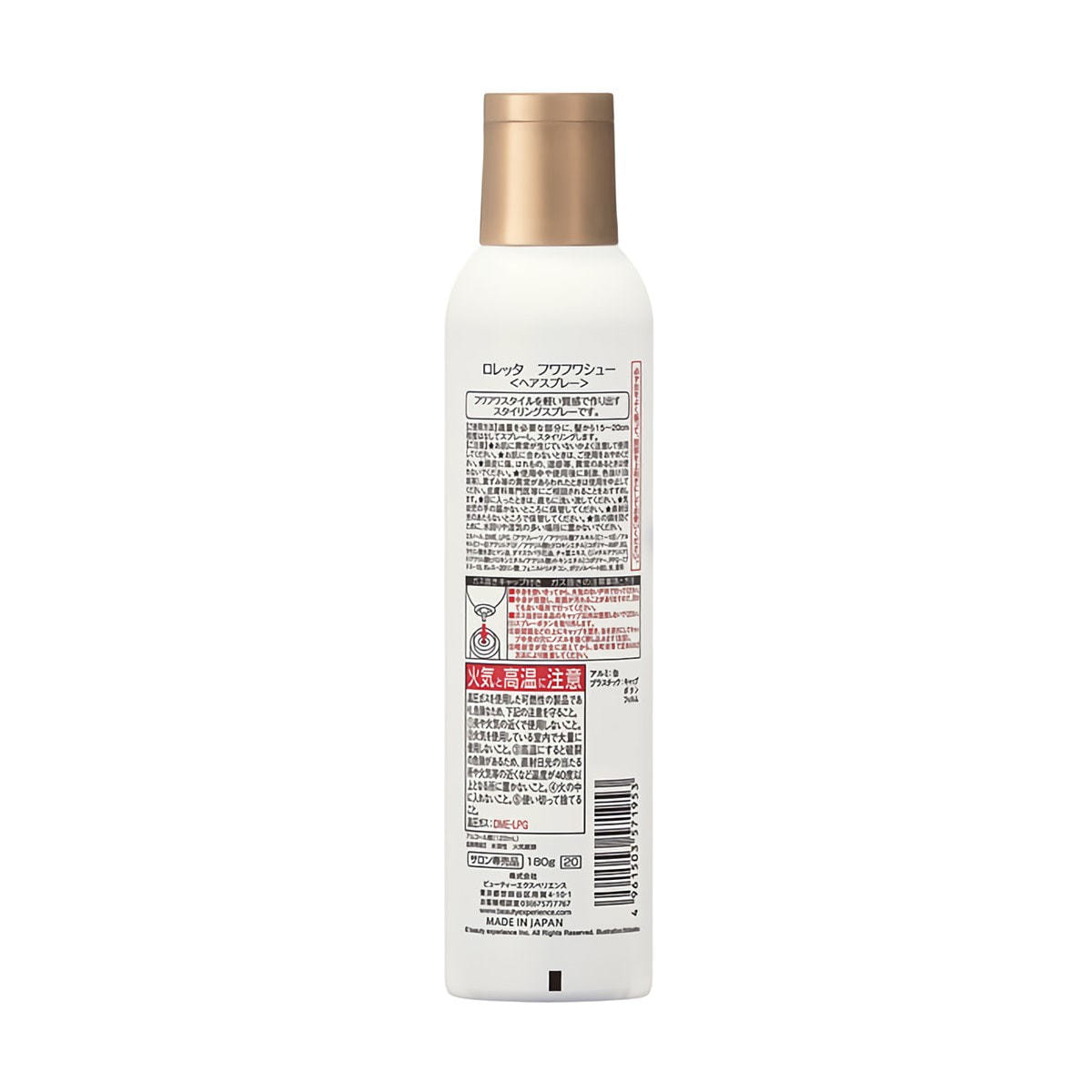 エタノール、DME、LPG、(アクリレーツ/アクリル酸アルキル(C1-18)/アルキル(C1-8)アクリルアミド/アクリル酸ヒドロキシエチル)コポリマーAMP、BG、ラウリン酸水添ヒマシ油、ダマスクバラ花油、チャ葉エキス、(ジメチルアクリルアミド/アクリル酸ヒドロキシエチル/アクリル酸メトキシエチル)コポリマー、PPG-7ブテス-10、オレス-20リン酸、フェニルトリメチコン、ポリソルベート80、水、香料