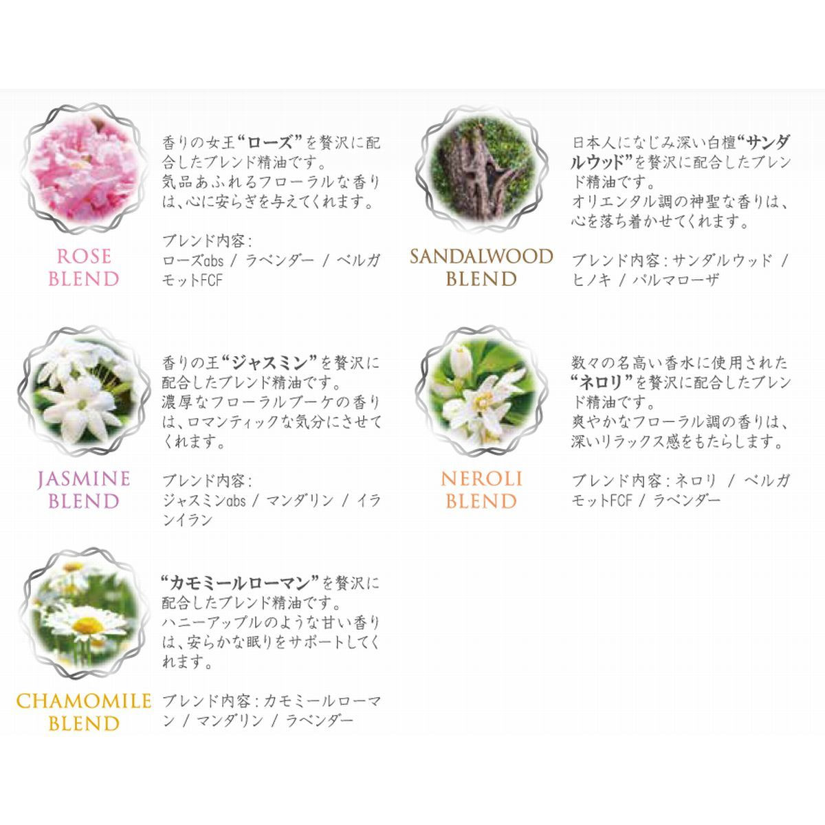 香り豊かな貴重な精油を贅沢にブレンドした、プレミアムシリーズのブレンドエッセンシャルオイルです。